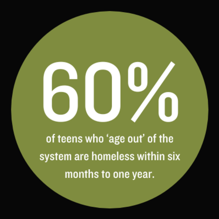 Every month, dozens of foster teens turn eighteen years old and emancipate or leave the child welfare system. History tells us that within six-months of being “independent,” more than 60 percent of these teens become homeless and experience severe housing instability (couch surfing is not a stable home). When homeless and living on the streets, these teens experience even more traumatic mental health issues, and often experience substance abuse and other negative life-style issues. In addition to these young adults needing stable housing and supportive, holistic services, local families with young children experience similar housing challenges.